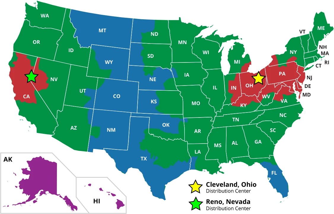 With two shipping warehouses, our shipping capability has expanded tremendously. We will be shipping high volume and common Mighty Line floor marking products out of both our Reno, NV and Cleveland, OH locations based on the shipping destination.